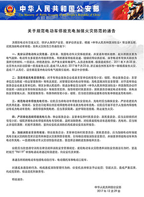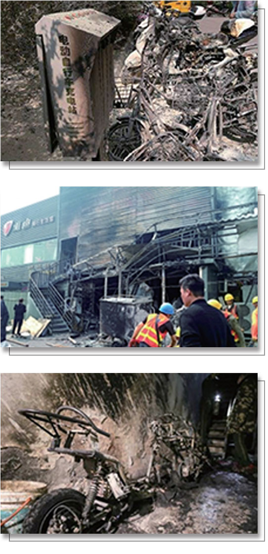 2017年12月31日公安部发布《关于规 范电动车停放充电加强火灾防范的通告》, 电动自行车违规充电不仅不利于物业管理, 而且存在着巨大的火灾安全隐患,时刻威胁 着百姓的人身财产安全,据权威部门统计每 年因电动自行车充电引发的火灾事故多达上 百起,给全社会造成巨大的经济损失。
